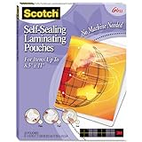 Scotch® Self-Laminating Sheets Letter Size LS854-25G, 9-1/16 Inches x 11-5/8 Inches, 25 Sheets 3M Self-Laminating Sheets - Letter Size RetailProtect important documents, favorite photos, keepsakes, emergency phone lists, and more with Scotch LS854-25G laminating sheets. These handy films require no special tools or equipment for sealing and accommodate most flat media up to 8.5 by 11 inches. They have a clear gloss finish that won't detract from your document's visibility and will help protect it from wear and tear for years to come.